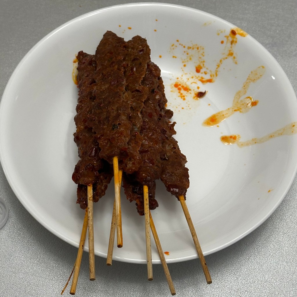I spent Saturday night at a Cambodian party. There was so much food and I ate way too much, but the best was these lemon grass-kafir lime beef skewers.