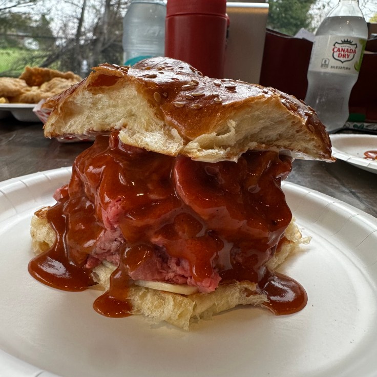 It’s 2025 and we need a food project. On New Year’s Eve, I found a list of the ten best North Shore Roast Beef Sandwiches, so here we go. It is expected that all true roast beef spots will have junior, large, and super (or something along those lines). It’s also expected that we can order a “three way” with no explanation. So it’s simple we order “three way” and see what we get. We started with the large, but have moved away from it because sesame bun is the worst of the buns.