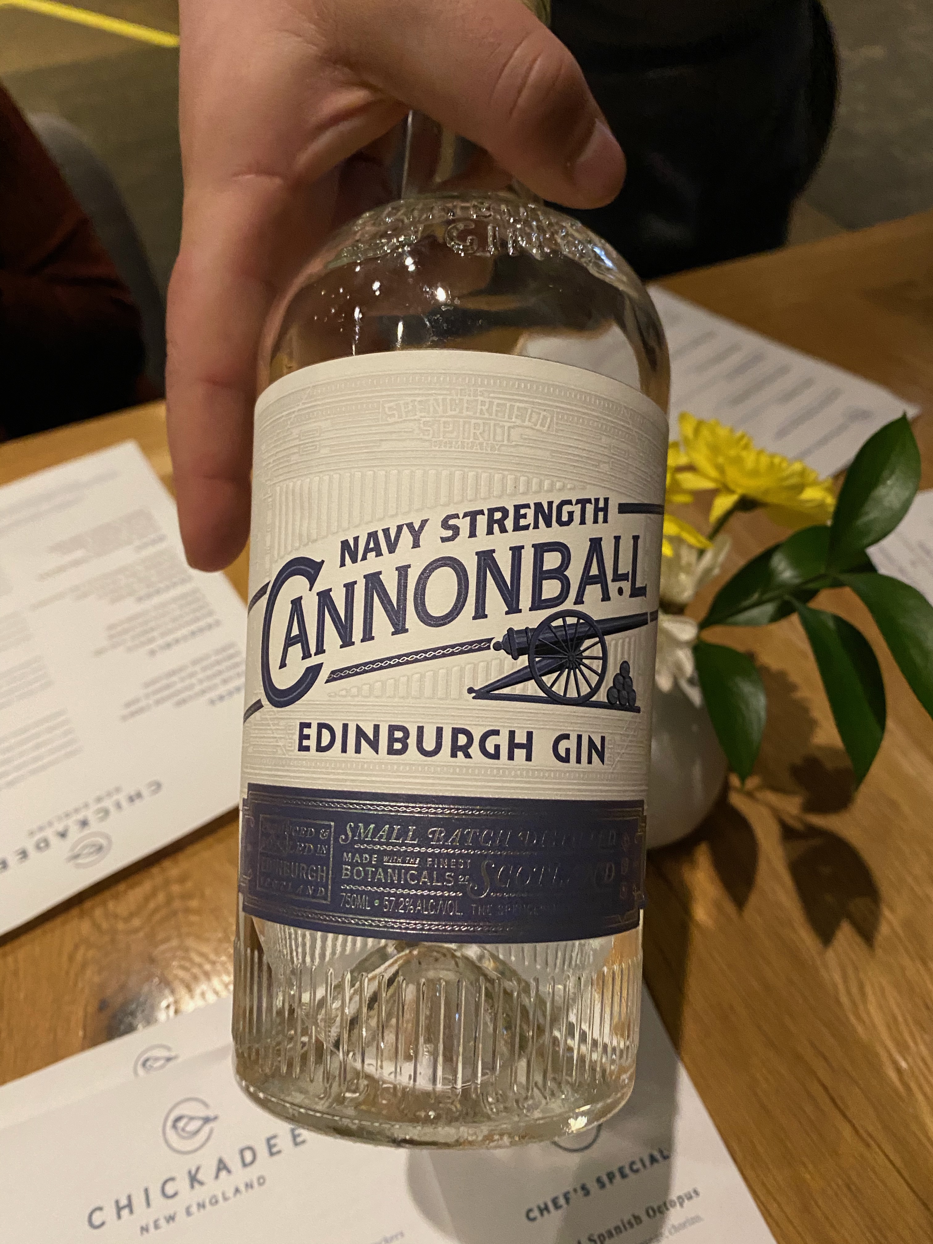Edinburgh Gin Cannonball, Navy Strength (3.6.21 – Chickadee, Boston, MA – photo 1, photo 2)