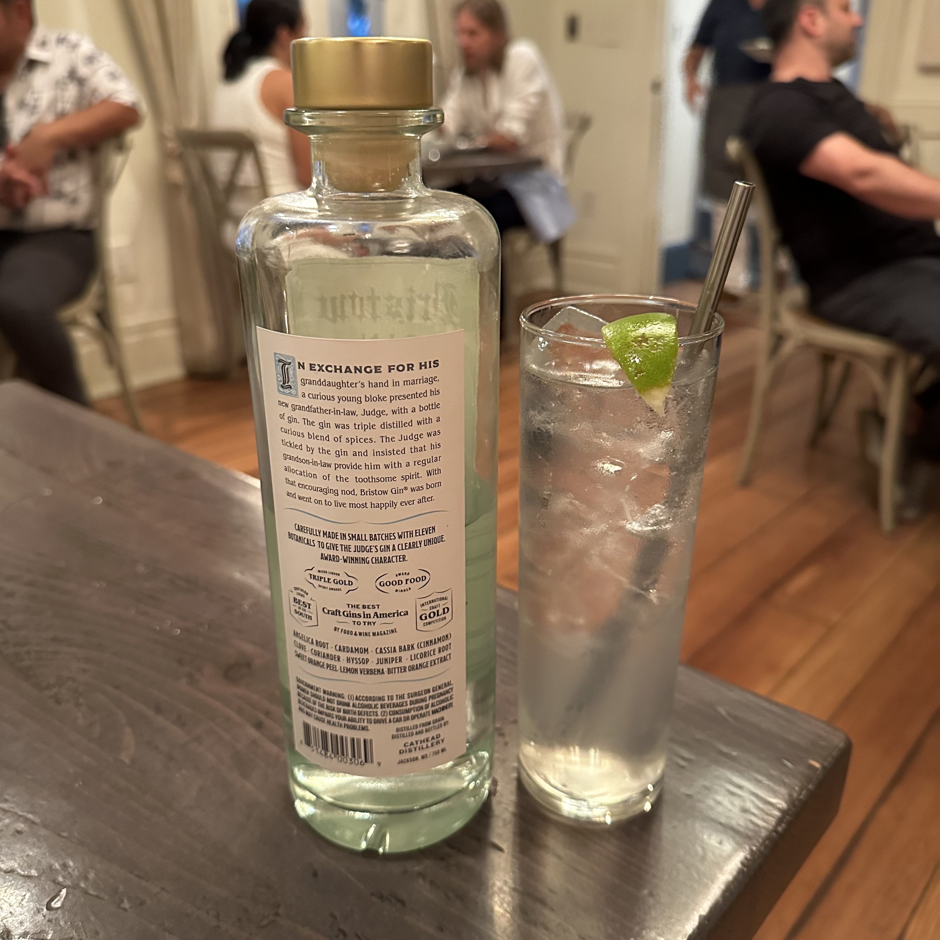 Bristow Gin (7.1.24 – Delaney Oyster House, Charleston, SC – photo 1, photo 2)